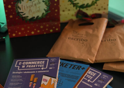 O upominki dla prelegentów oraz niespodzianki dla aktywnych uczestników wydarzenia zadbali: Escribo, Marketer+ i Ecommerce w praktyce, Kajś studio i Urban Pinsecco.
